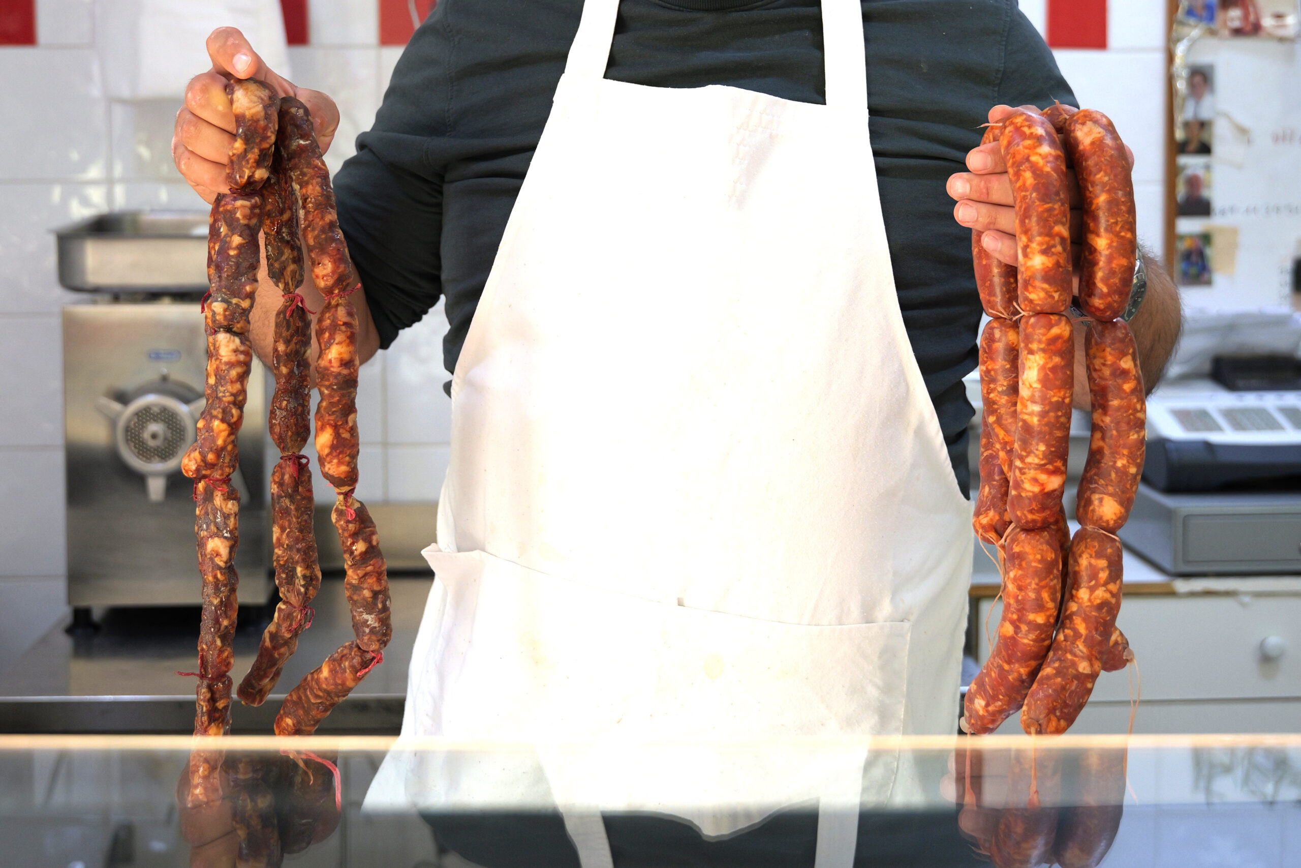 Le salsicce così preparate vengono essiccate appese a delle canne, dal giorno seguente all'insaccamento si passa all'affumicamento con il fumo di legna di lentisco.